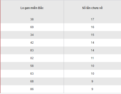 Thống kê loto gan XSMB thứ 5 ngày 21/07/2016