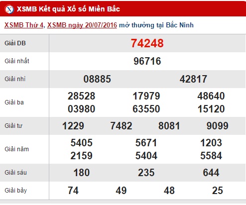 Trước khi đến với kết quả XSMB thứ 5 ngày 21/07/2016, hãy cùng Xoso.com.vn review lại kết quả XSMB thứ 4 ngày 20/07/2016.