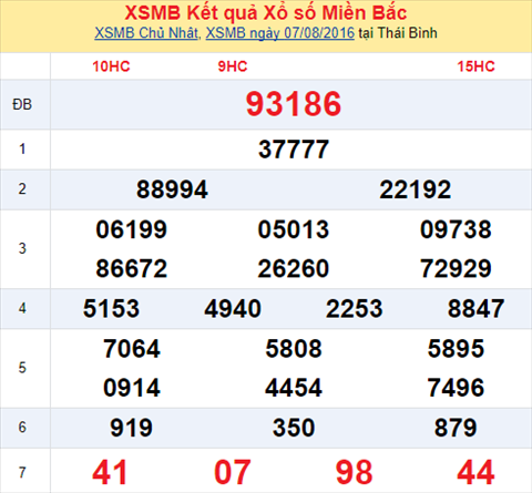 Hãy cùng chúng tôi theo dõi kết quả vào cuối ngày nhé. Còn bây giờ, xoso.com.vn xin gửi đến các bạn nội dung bài tổng hợp, phân tích kết quả xổ số miền Bắc hôm nay nhé. Và trước khi đi vào nội dung chính, hãy cùng điểm lại tình hình kết quả XSMB hôm qua ngày 07/08/2016 nhé !
