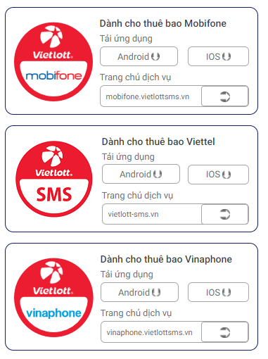 Hiện nay, Vietlott đang hợp tác với 3 nhà mạng viễn thông lớn nhất Việt Nam đó là: Mobifone, Viettel, Vinaphone để phân phối xổ số tự chọn số điện toán qua điện thoại.